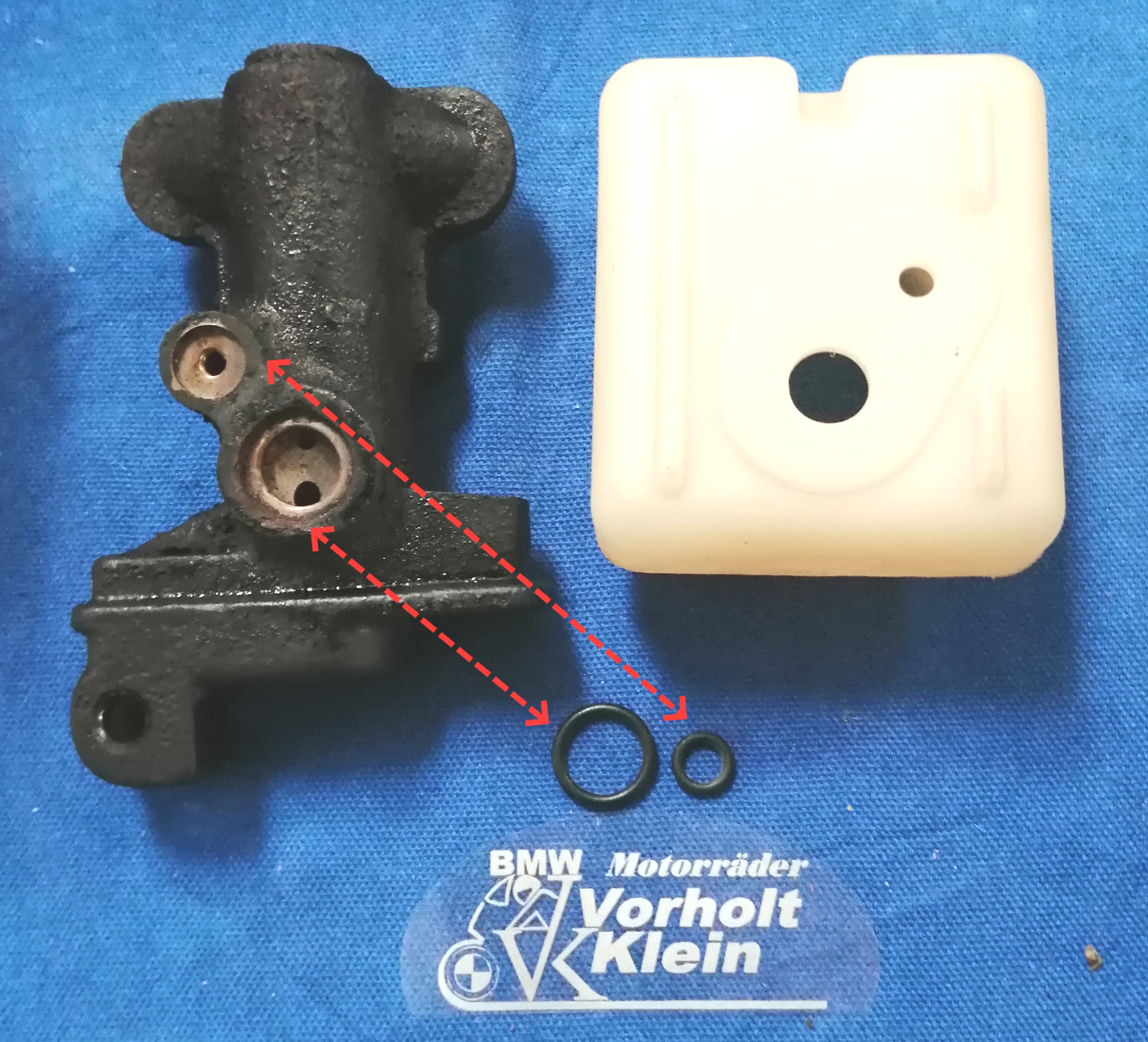 Dichtungen der ATE Bremspumpe zwischen Behälter und Pumpe